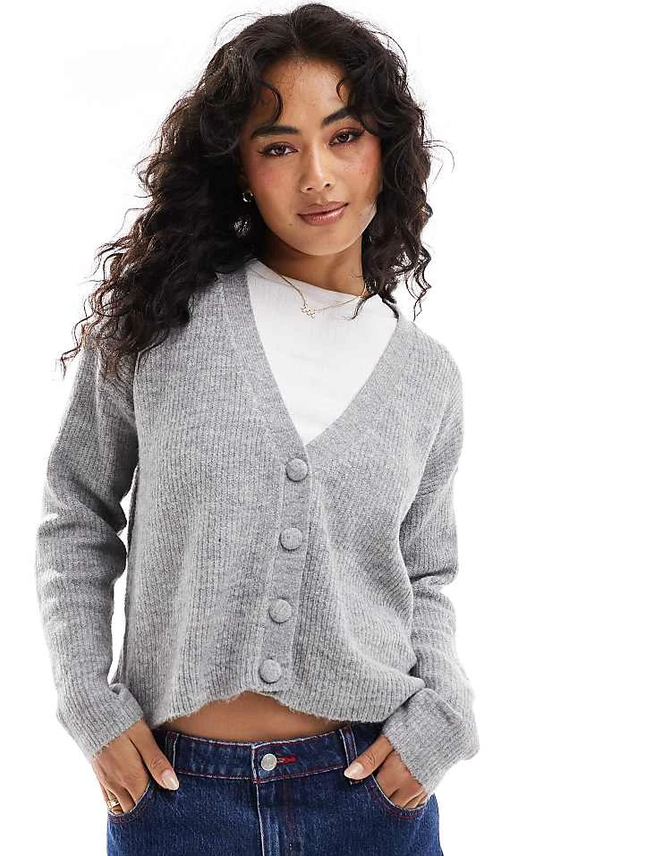 Brave Soul Cardigan With Bow Front Ties In Cream And Black For Women