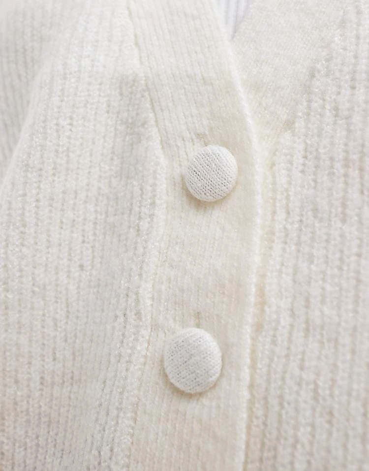 Brave Soul Cardigan With Bow Front Ties In Cream And Black For Women