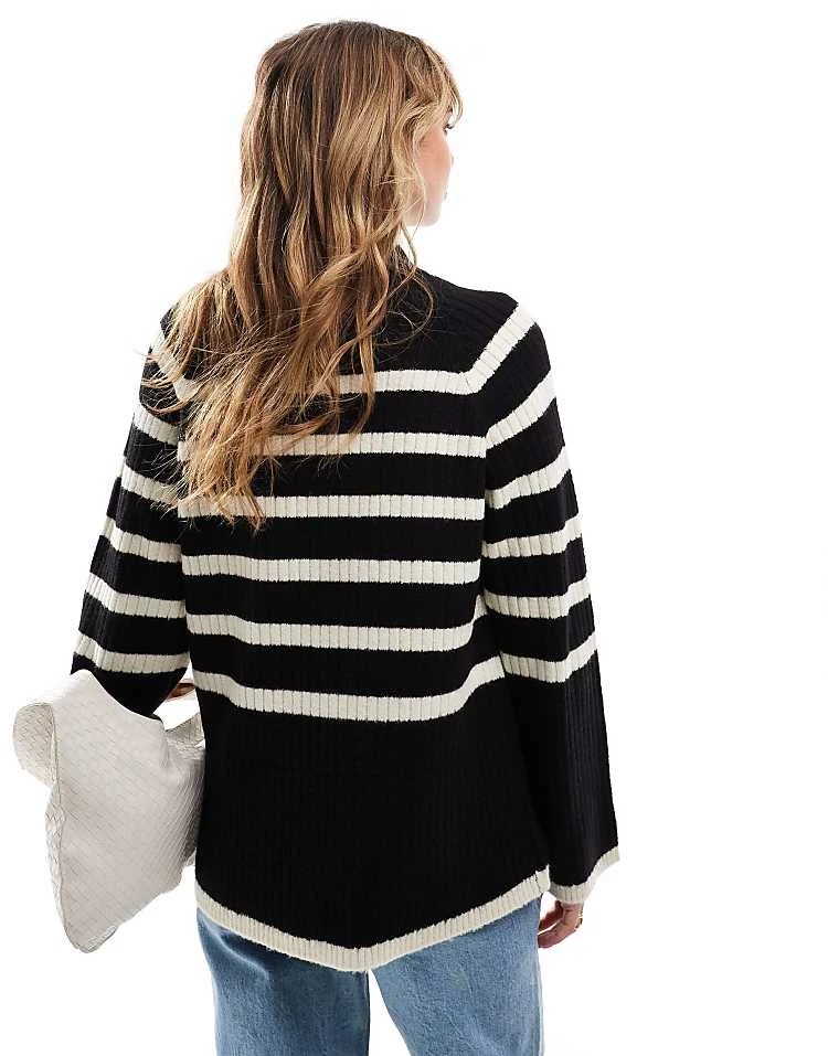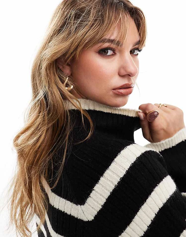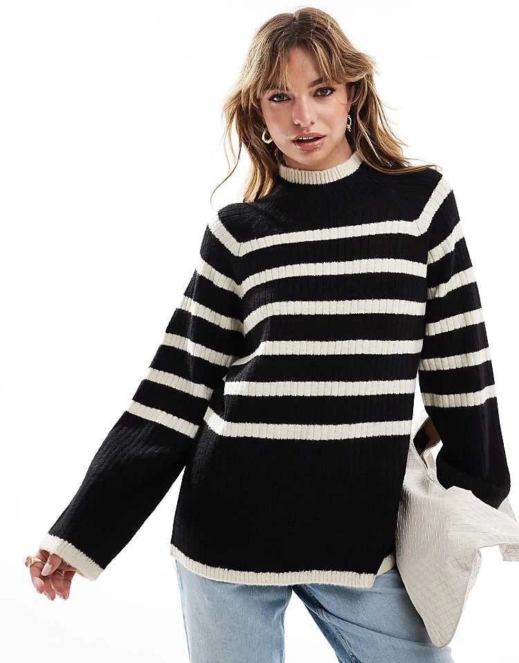 Brave Soul High Neck Jumper In Burgundy And Lilac Stripe For Women