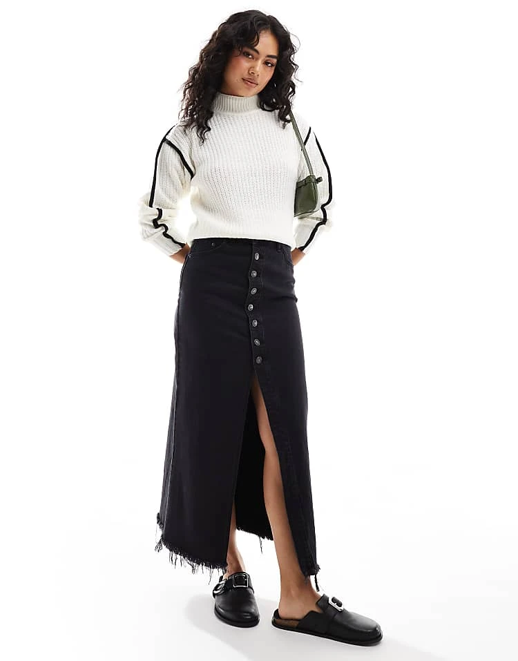 Brave Soul Crew Neck Cardigan With Stitch Detail In Black For Women