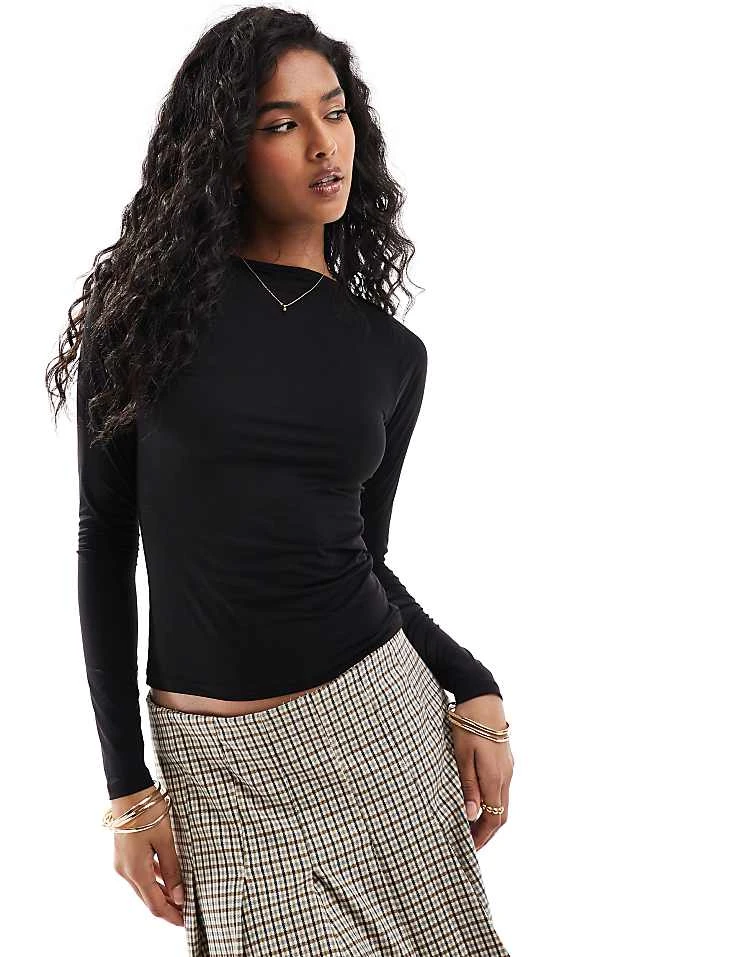 Brave Soul Crew Neck Cardigan With Stitch Detail In Black For Women