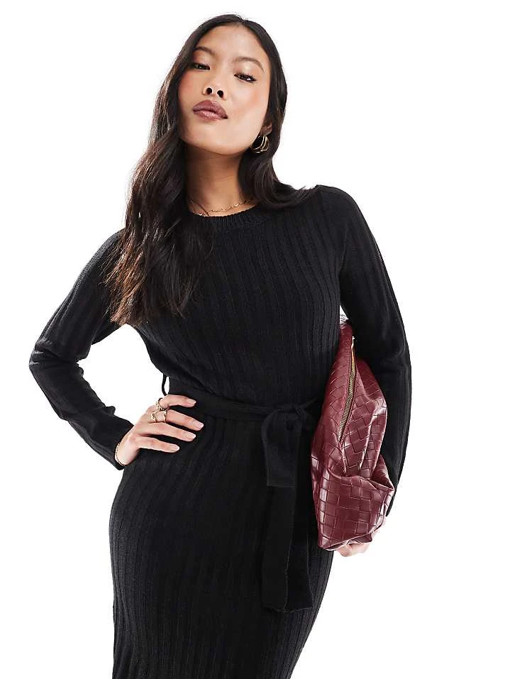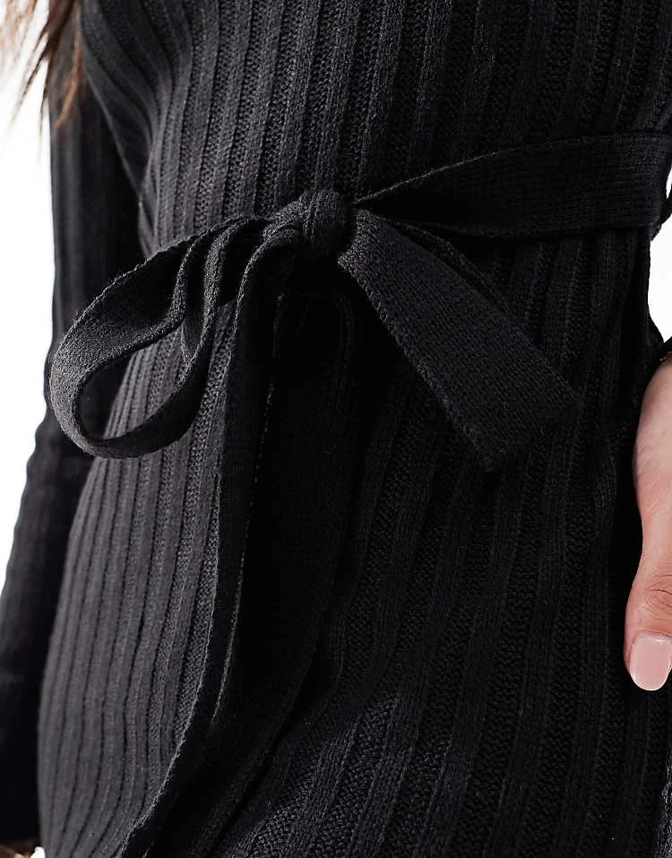 Brave Soul Crew Neck Cardigan With Stitch Detail In Black For Women
