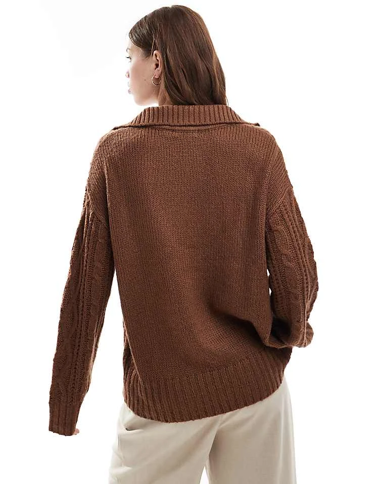 Brave Soul Petite Oversized Cable Knit Jumper In Brown For Women