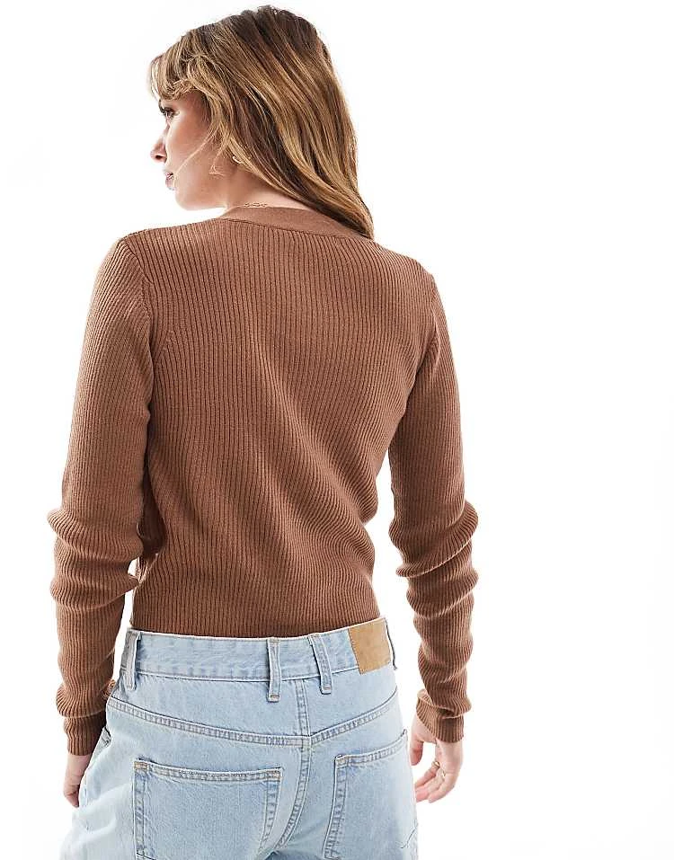 Brave Soul Crew Neck Cardigan With Stitch Detail In Black For Women