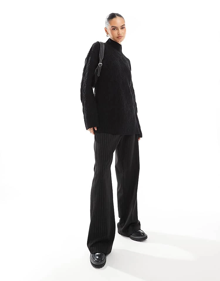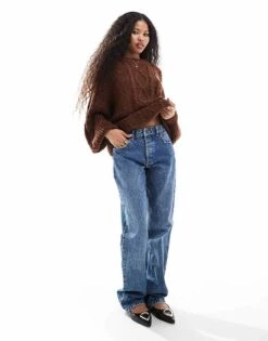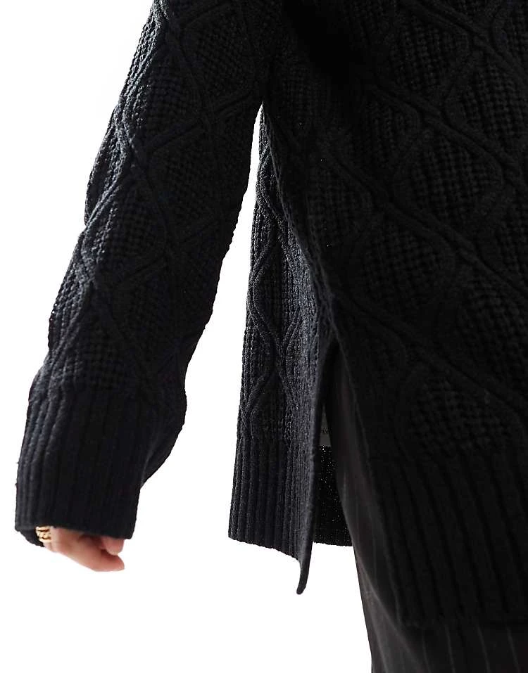 Brave Soul Petite Oversized Cable Knit Jumper In Brown For Women