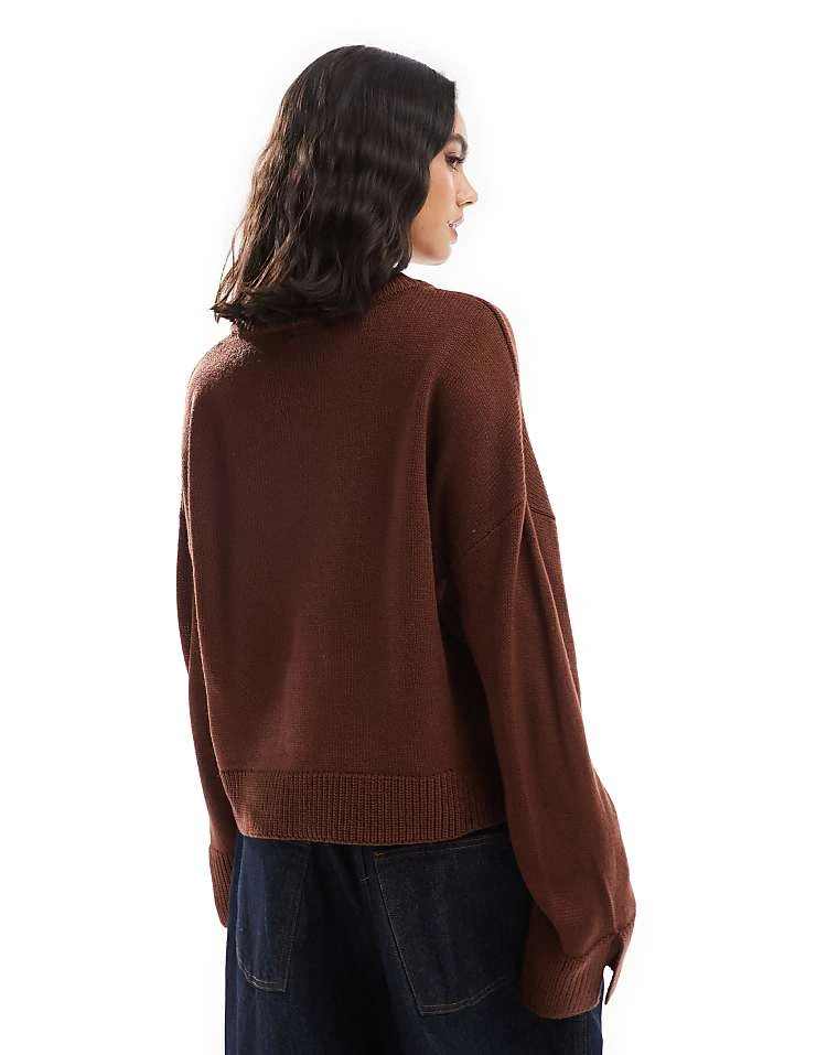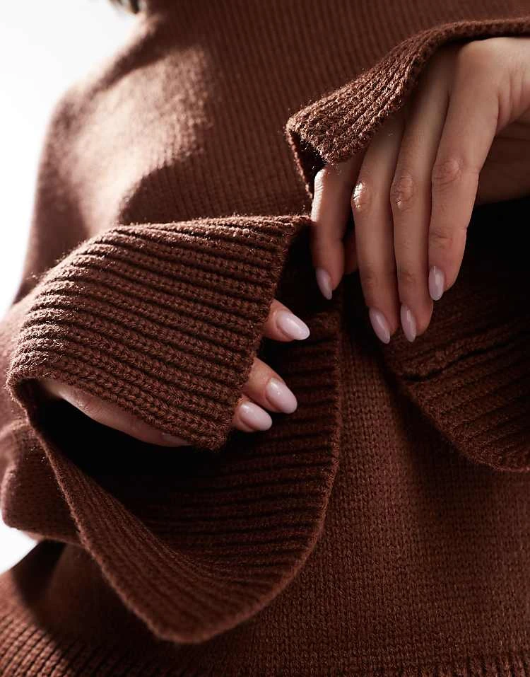 Brave Soul Petite Oversized Cable Knit Jumper In Brown For Women