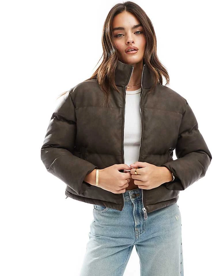 Brave Soul Ribbed Cardigan With Gold Buttons In Brown For Women