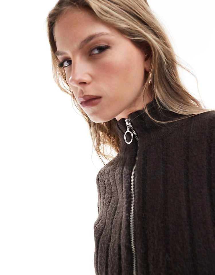 Brave Soul Ribbed Cardigan With Gold Buttons In Brown For Women