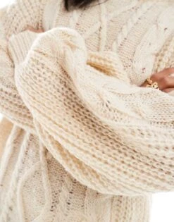 Brave Soul Petite Oversized Cable Knit Jumper In Cream For Women
