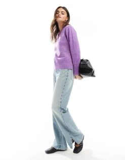 Brave Soul Straight Leg Trouser With Split Hem In Black For Women