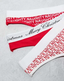 Brave Soul Christmas 3 Pack Thongs In Naughty And Nice Print For Women Multi