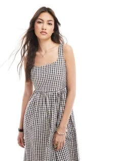 Brave Soul Check Shirt And Trouser Pyjama Set In Light Blue For Women