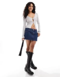 Brave Soul Crew Neck Cropped Jumper In Cobalt Blue For Women Mid Blue