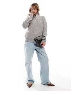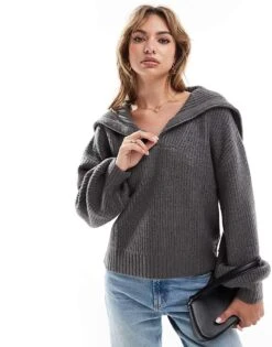 Brave Soul Ribbed Half Zip Jumper In Dark Grey For Women Charcoal