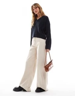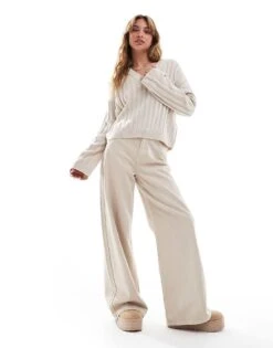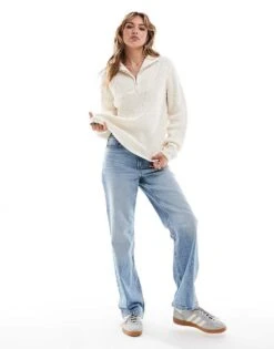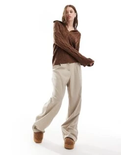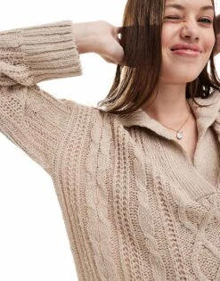 Brave Soul Polo Collar Cable Knit Jumper In Light Brown For Women