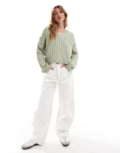 Brave Soul Ribbed V-neck Jumper In Sage Green For Women Light Green