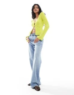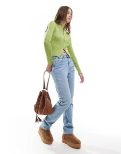 Brave Soul Ribbed Knitted Zip Front Jumper In Green For Women Mid Green