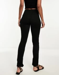 Brave Soul Straight Leg Trouser With Split Hem In Black For Women